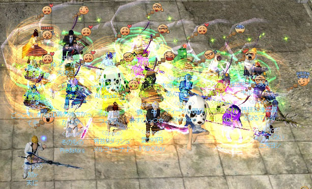 21:00/BD/バベ/対サビ家さん/キサナ 攻め続けてみましたが、B1も落ちなかったですね(-ω-`) 相変わらずσ(´ω`*)はタイミング合わず。ぐだっと。 22:00/旗/負/キサナ 入場~開始での稼働率が低そうな感じにやる前から萎え気味でしたが。 ちょこちょこいい場面はあったかな、と(´ω`。結果はともかく。 サビ家のACさん同士の対決が面白かったです(*´wwww`) 23:00/BD/space75%城防衛/フド/対サビ家さん/キサナ いつもBD開始時間間際あたりから集合なことが多い気がするすぺすにしてはめずらしく(?)、 22時の旗の後から準備な雰囲気に。 すぺすに戻ってからたまにin人数が3ページ目にかかることはあったのですが。 今回はなんと、助っ人さんも多数により。 in人数が4ページ目までいってました(´www`*) 4ページ目なんて、イベントギルドの時ぐらいしか見たことないような人数です(*´ω… そんな、すぺすだけでも大人数の中、対戦相手のサビさんもいつも通りの安定した人数(*´ω… 開始前から、これ絶対重い!と誰もが確信していたのでした。 B1、B2、B3と、守り始めは安定しているようで、途中からチャクラで崩れてしまい。 終盤でしたかね。サビ家さんに城主交代。 そこから攻めて落として、再び守りに入るものの、やっぱりチャクラで崩れてしまって。 残り約1分で再びサビ家さんに城主交代。 時間的に無理だろうということで、そこまで、でした。 (*´ω`)ю。 こんなにもの大人数のBDなんていつ以来でしょうか。 エル鯖時のLegendさんにお邪魔した時でも、さすがに4ページ目はなかったような(´ω`w ACだけでも、助っ人さん含め5人(´ω`? 終わってから、プリで出ても良かったかなとも思いましたが後悔はしてません(´ω`=。。。 あれだけ沢山の人がいらしたので、どなたか1人くらいは動画撮影してらしたんじゃないかと… ← (´ω`)。 すぺすメンバの皆さんも、助っ人参戦の皆さんも、サビ家の皆さんも、 お疲れさまでした&ありがとうございました(´ω`*)ノ [続]は23時BD後の記念撮影φ(・ω・`*) ◆今日の1枚。 23時BD後。 人数が素敵なことになっていましたので、 殊勝でしたが、記念撮影。写っておられない方もいるのが残念ですが|ω・`)。 エフェクトをmid→offにしたら何故かエフェクトが消えなくなってしまったので、見辛いです。。。 ついでにキサナはどこに写っているかも探してみるといいですよ(*´艸`) ◆つぶやき。 激しい眠気を我慢して出た甲斐があった23時BDでしたd(´ω`*) なかなかこういうBDには巡り合えないでしょうから…。 ◆おまけの1枚。 22時旗後のギルチャから。σ(´ω`*)この時プリ(ナキ)で普通にログイン中だったのですが。 笑いました(´wwwwwww`*) σ(´ω`*)ここ最近in率低下してるので、私がいない間にこの会話が交わされていてもおかしくなかった気がするのに、よりによってプリでin中に、自分の目の前でこの発言が見れるとは(*´艸`)www こちらのブログをご覧になっていない方には、 まだキサナ=ナキってのはバレていなかったりするのでしょうかねぃ(´ω`? COMMENTSCOMMENT FORM PR