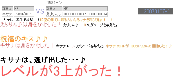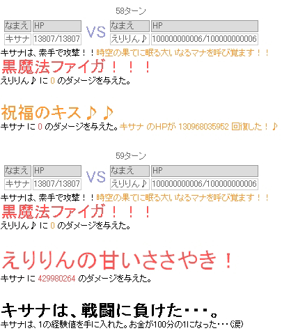 ---------- 現在、レベルは146。 職業は時魔道師を極めたので、極めていなかったシーフに戻り。 装備は、防具のみ…。 お金は約187,132,000Karz。 噂のえりりんとやらにも遭遇。 レアらしい上に、たまに攻撃されるトカナントカいう噂。 レアな上に"たまに"しか攻撃されないはずなのに、 殺されました。初めて会ったのに。ちょっと殺意が芽生えました。 えりりんとの遭遇2回目。 コルムオンラインの方で、マナポ掘りと、BDに死にに行くくらいしかやることがなく、このcorumixばっかりやっている気がしないでもないです…。 COMMENTSCOMMENT FORM PR