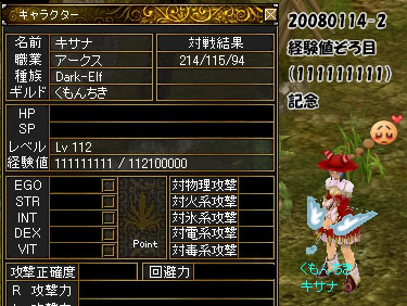 もう暫くお待ち下さい(ノω`*) 近況というか、ギルドとGDについてを メモしておきたいと思います。 ギルドは2008年1月14日付けで、 くもんちきさんにまたまた(何度目だろう…)お邪魔しています。 最近活発に活動しているとは聞いていましたが、 見知らぬギルメンさんも多くびっくりしました(´ω`*)w これから暫くの間お世話になりますm(_ _*)m 先日。 GDを衝動買いしてしまいました(*ノωノ) GDより先に装備をなんとかするべきだったような気もしますが。 寿命が短いせいか、お安めの値段でしたので、つい(ノ∀`*)… ずっと欲しかったパルで、名前は"雪花"とつけました。 買って1週間も経っていませんが、既に2度GDKされています。 (ついでに自分も死んだ) …(´ω`*)養命代払って下さい。。。 ちなみに、GDKしてきたのは、アラー持ちの人です。 ハイドで近付いてきて、 いきなりアラー出現、ドーン!終了。という感じでした。 最近有名な人らしいのですが。 いつかお礼をしないとなりませんね|ω-)y-~ 困ったものです。 あとあと、今日は狩りをしました! 時間はかかりそうですが、もう少しでレベルも上がりそうです。 とりあえずゾロ目記念SS。 ステを隠してもあまり意味がないような気がしますが、 そこはスルーで宜しくなのです(´ω`*) …ってもう時間なのでお休みなさいませ!ノフ○ COMMENTSCOMMENT FORM PR