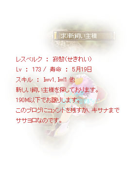 | キサナのCorumBlog。-未来が過去になった現在(いま)。 [PR]× [PR]上記の広告は3ヶ月以上新規記事投稿のないブログに表示されています。新しい記事を書く事で広告が消えます。 SS祭Part34~2008年4月21~30日編【SS祭Part34~2008年4月21~30日編】