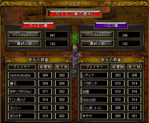 見て下さいこの死亡数!栄光とは言え、ここまで死ねるのは、きっと私くらいのものなのでしょう…(`・ω・´) 最後どれだけ人が少なかったのやら(*´ω`)… 栄光に参加された皆様、お疲れさまでした。 最後まで残られた青(緑?)チームの皆様、ありがとうございましたm(_ _)m COMMENTS無題私がランクインしたときより、多いですね。