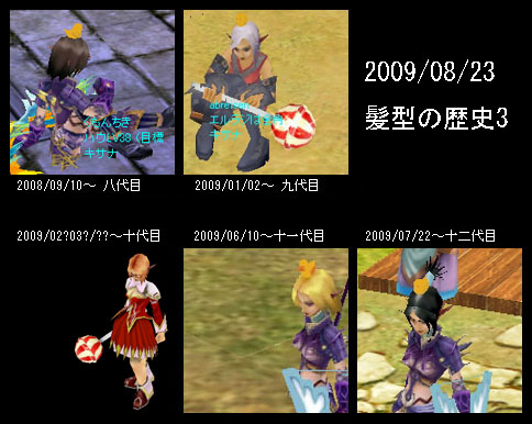 ということで、今日は髪型コレクションをお送りしますのです。 今までのコレクション↓ ◆髪型コレクション1 ◆髪型コレクション2 ◆髪型コレクション3 ↓ ◆八代目 2008/09/10~ こげ茶な感じですね。 肌の色が余計暗く見えたらしいのです。 ◆九代目 2009/01/02 淡い紫?な感じ。 新しい(?)方の髪型なので、顔のグラフィックがちょっと前に出ているので、ジェスターマスクとかを被ると、顔がめりこんだ形に… ◆十代目 2009/02?03?/?? この髪型にだけは絶対にしない!と思ってたのですが、やっちゃいました、って感じだったのを覚えております…。 ちなみに、この画像の格好はかなりお気に入りでした。 ◆十一代目 2009/06/10 金髪! 他の同じ髪型の方を見てて、羨ましかったのですが、自分でやってみたら、アレ?と…。 ◆十二代目 2009/07/22 夏なのでいいかな!と思ってるのです(`・ω・´) ただ、某方には、似合わない!というツッコミを頂きました(ノω`=) キサナに似合う髪型ってどれなのでしょう(´ω`=)ネー… 9月になったらまた変えようと目論んでおります。 COMMENTSCOMMENT FORM PR