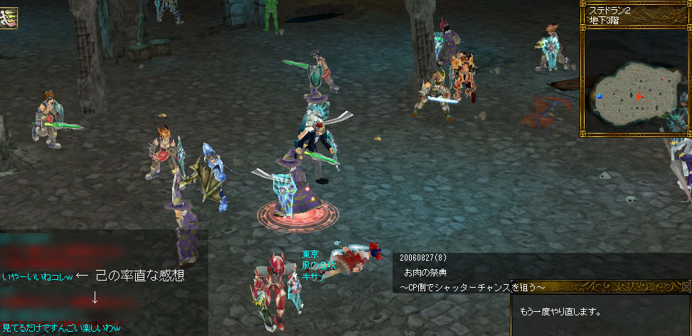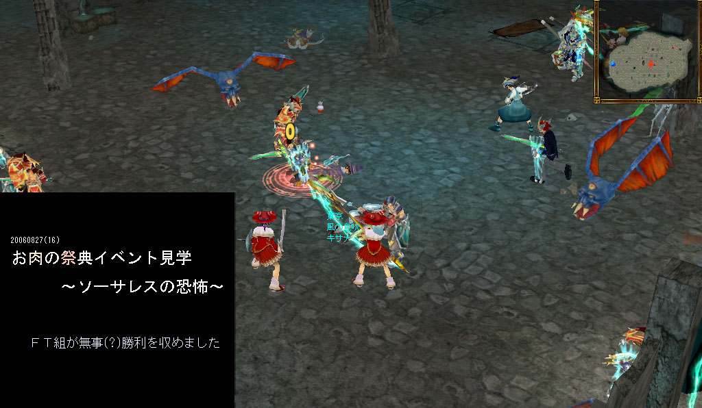 今日、フォトショップでtgaファイルが開けるということを知りましたっ。 なので、久々に黙々と編集しましたよ。 いつも通り縮小されている画像はクリックで原寸になります~ そして重いです。 ■2006年8月27日お肉の祭典イベント 詳しいことは公式のUE掲示板をご覧下さい(笑) 重いBDでしたので、エフェクトを切っておりました。 故に、なかなか迫力が感じられず。ちょっと勿体無かったかなと…。 いちいち文字なんて打ちません。どうぞ画像を拡大してご覧下さいませ~ ----------- ---------- FTっていいですねぃ~ でも何より、これだけの人数が集まったということに感動しました。 イベント主催者さん、そして参加者の皆様お疲れさまでした!! COMMENTSCOMMENT FORM PR