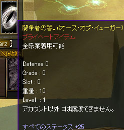 3時栄光後、4時に寝て、目が覚めたら13時栄光の5分前だったのです。 寝過ぎですよね(*´ω`… そこからちょっと裏作業しつつ、強化。 予算オーバーに涙しつつ、やろうと思ってたところまでは完了(´ω`。 強化途中で、6Nリキが尽きてしまったため、6Gボックス目当てで (闘争でもついでに出たらラッキー!と思って)、ジオン5を購入。 闘争箱は2個…で、誘惑に負けて自分で開封しちゃいました(つω`*) 1個目は既に所持していたもので(´△`)アー… 2個目は持ってなかったこの子↓でした! シルバーでめっさ綺麗!!(*´ω`*)タハァ 追加でS1が付くので、入手直後から愛用開始(=´ω`っ 20時にちょっとマシになったかもしれない装備で栄光出てみたら、 予想通りあまり効果が無くて泣きそうでした(*´ω`… 話は変わりますが、(´ω`。 対人戦で、POTが押せてないことが多く、キーボード押してるのになんでだ!って思っていたのです。 あまりに不思議な現象だったので、今日ついに栄光中、画面から目を離して自分の手元を見たら… その1. 数字の1の位置のPOTがちょうど切れてた その2. 1の隣の半角/全角キーを押してた でした(;´ω`… 長年の謎がやっと解けました………きっと大半は2です(´ω`*)ネー。 どうやったら、このうっかりを回避できますかね(´ω`*)ネー? (*´ω`栄光の、どうでも…な話 最近、栄光内でドクロナントカさんが見つけ辛いです。 変装のつもりか聞きたかったのですが、暇な展開ではなかったので聞き損ねました。(*´ω`… COMMENTSCOMMENT FORM PR